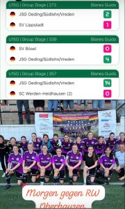 Hochmotiviert ging es ins letzte Vorrundenspiel gegen den SC Werden-Heidhausen 2 – und die Mädchen waren einfach nicht zu stoppen. Mit Spielfreude, Tempo und starkem Zusammenspiel fegten sie den Gegner mit 14:0 vom Platz. Ein perfekter Abschluss eines erfolgreichen Tages.