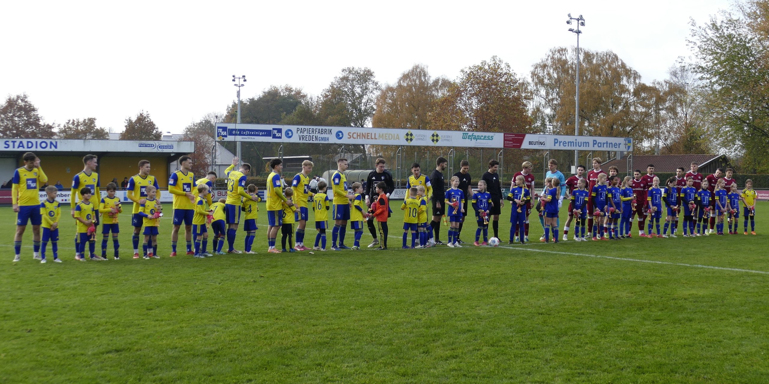 Doch damit war der Tag für die Kinder noch lange nicht vorbei: Sie durften beim Oberligaspiel SpVgg Vreden gegen Arminia Bielefeld II als Einlaufkinder mitwirken.